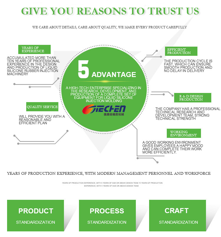 Company profile:Dongguan Jiechen Silicone Rubber Machinery Co., Ltd. is a high-tech enterprise specializing in R & D and manufacturing of liquid silicone rubber injection molding machine. The company has a professional technical research and development team, strong technical strength and perfect after-sales system to provide strong technical and service guarantee for customers. The company has advanced equipment, perfect technology, strong technical force, accumulated more than ten years of professional liquid silicone rubber injection machinery design and production experience, obtained a number of invention patents, reached the leading technical level in the industry.The company's liquid silicone rubber injection machine is widely used in medical, maternal and infant, auto parts, electronics, stationery, kitchen, diving, bathroom and other fields, and developed precision micro liquid silicone injection machine, liquid silica gel (solid to liquid) intelligent feeding machine, all-round to meet the needs of different customers."Liquid injection, Jiechen service" is the same principle we always adhere to. We welcome friends from all walks of life to guide and negotiate business!Contact person: Mr. Chen RuizhongTel: 86 0769 26628975Mobile: 13038846085Fax: 86 0769 26628579Address: Ji erheng Road, aoshitang Industrial Zone, Dongcheng, Dongguan, Guangdong, ChinaOfficial website: //dyyey.cnCompany homepage: //www.jdyyey.cn//jiechenjx.1688.com